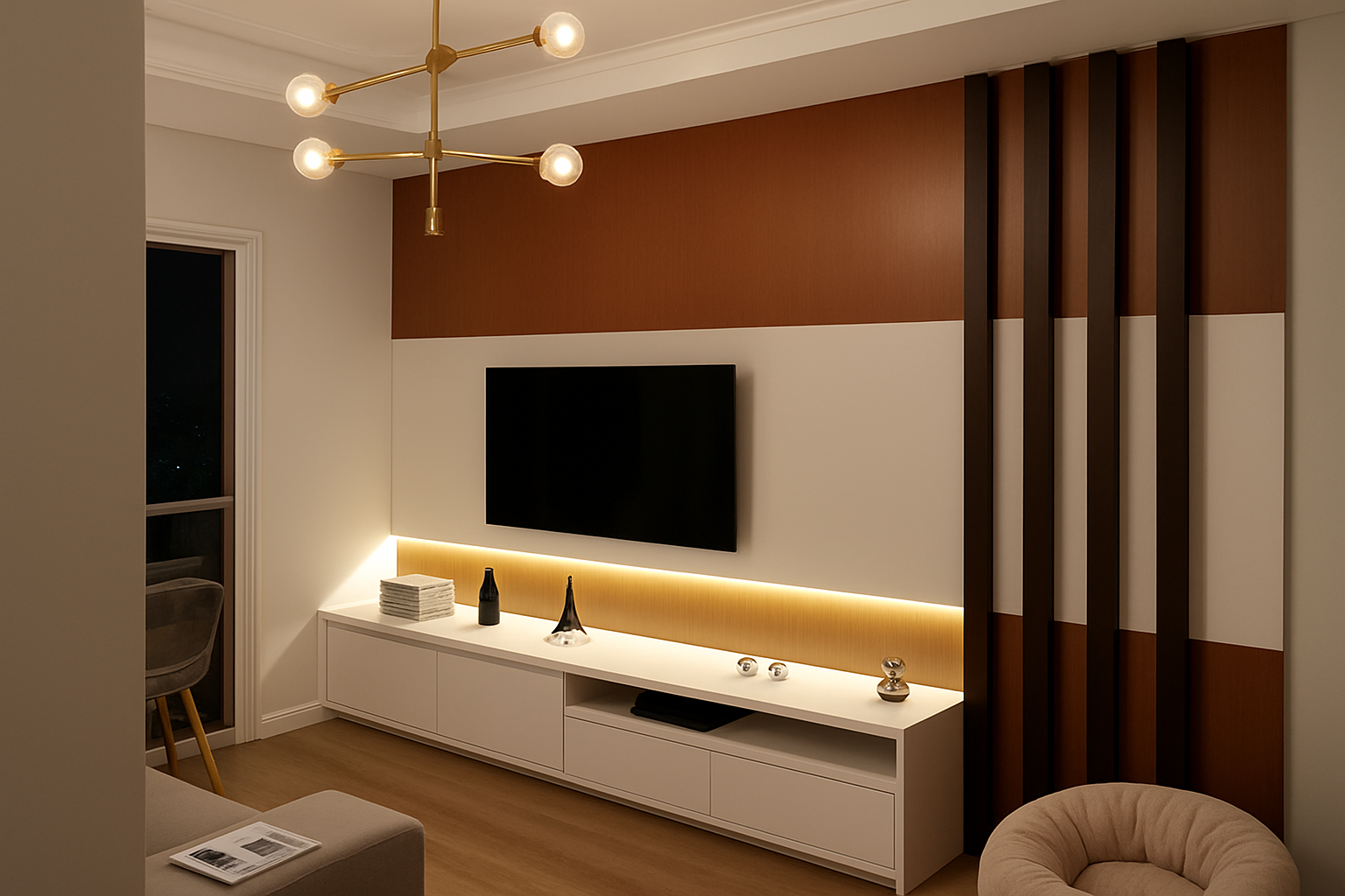 Sala com marcenaria sob medida, conforto e estética.